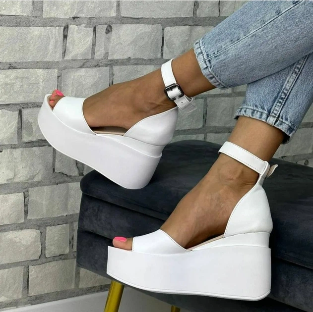 Модные Босоножки Женские Белые на Танкетке, Размеры 36,37,40,41