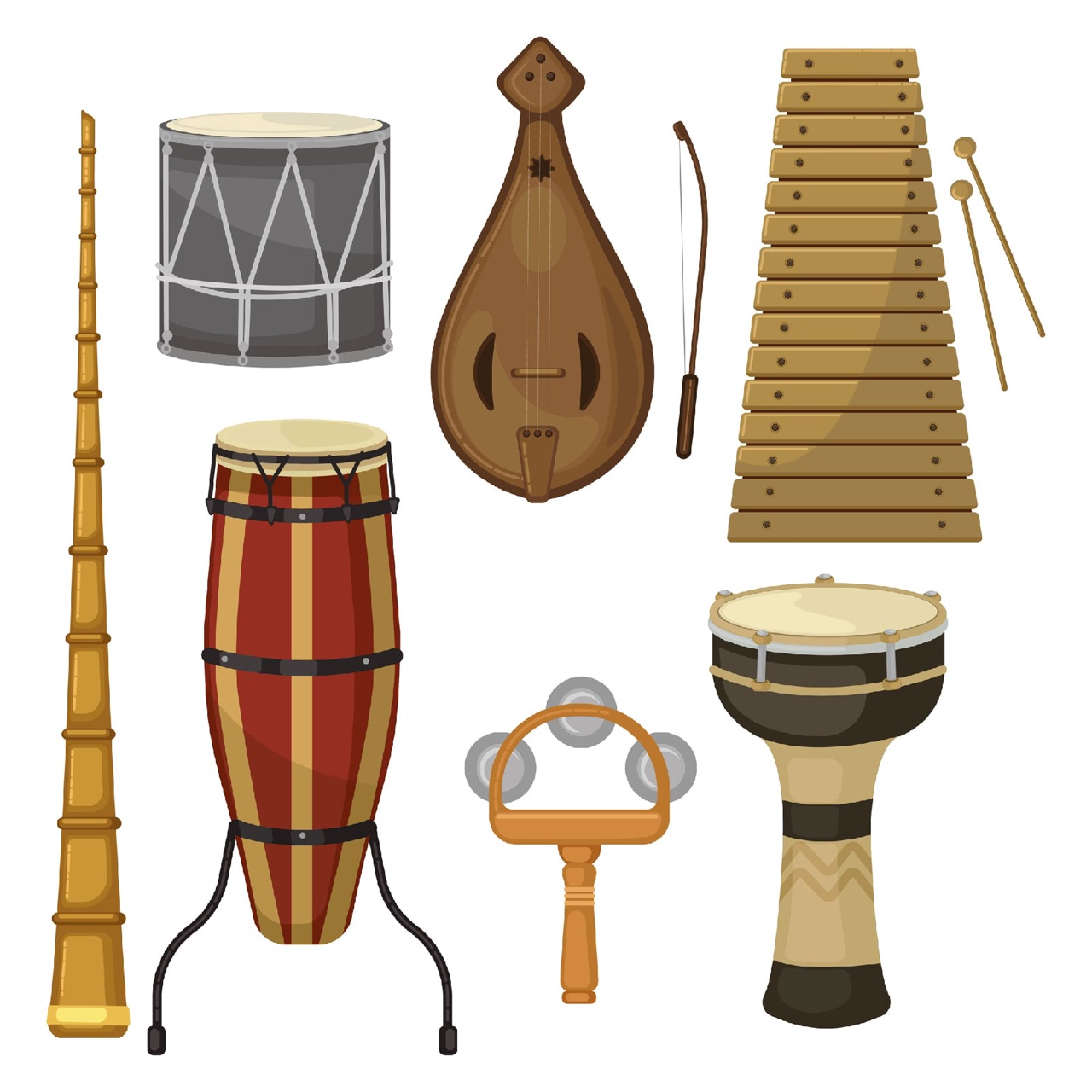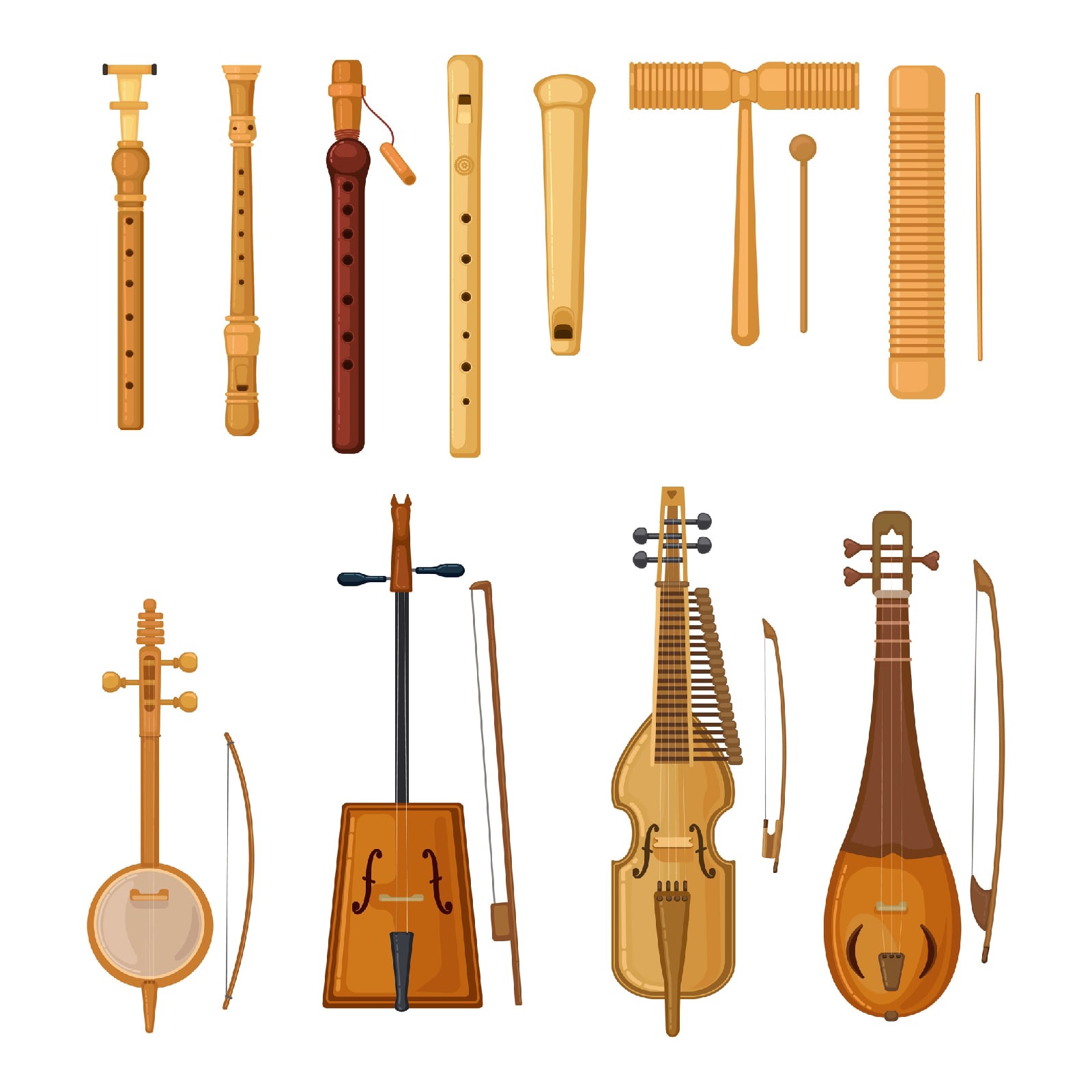 Иллюстрация Классические музыкальные инструменты в стиле 2d