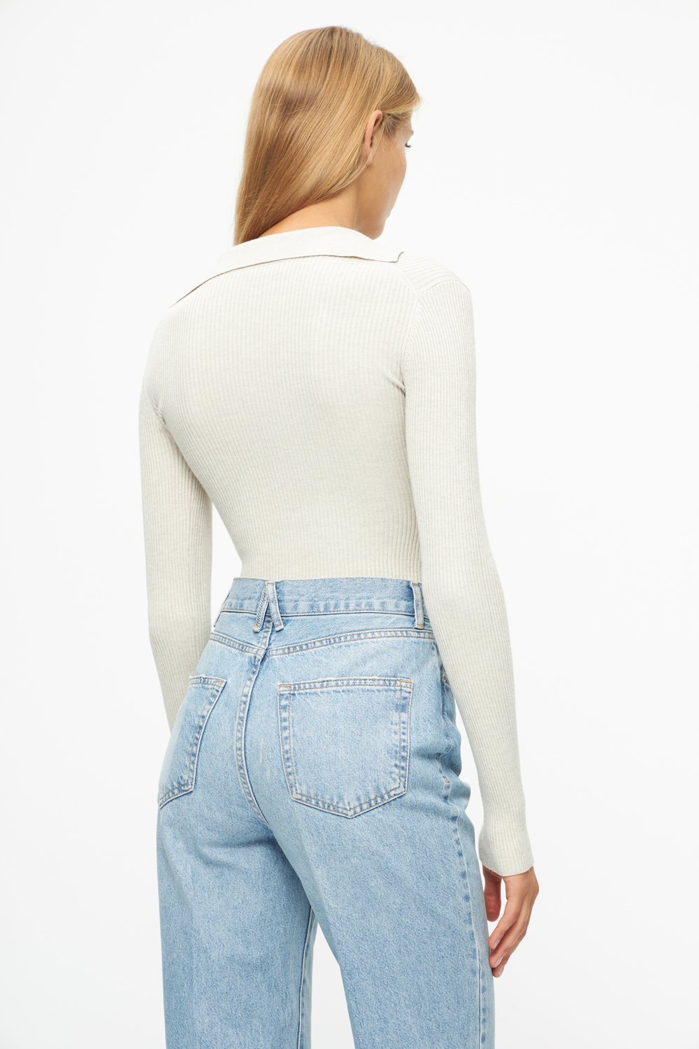 Боди с воротником поло светло-бежевый меланж цвет