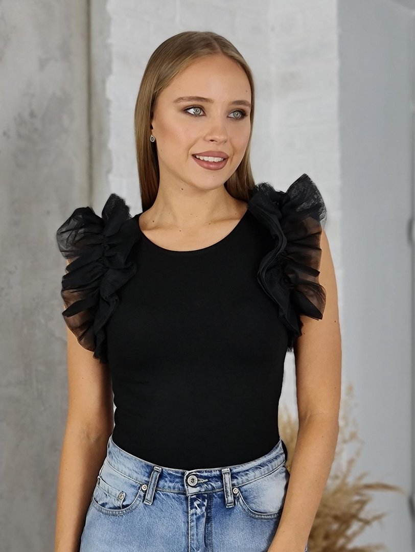 Боди чёрное с объёмными рукавами купить в интернет-магазине